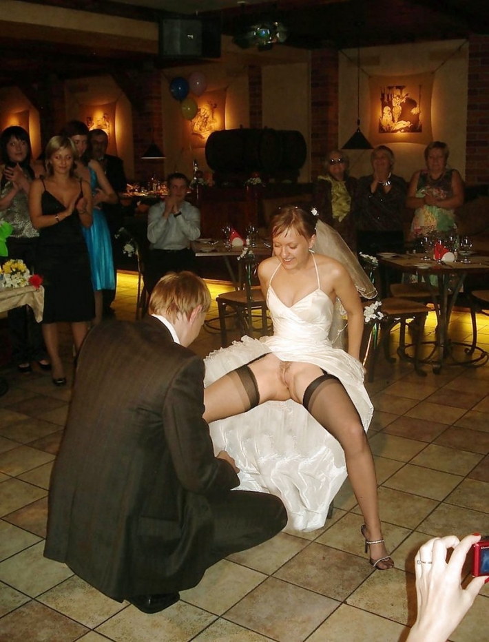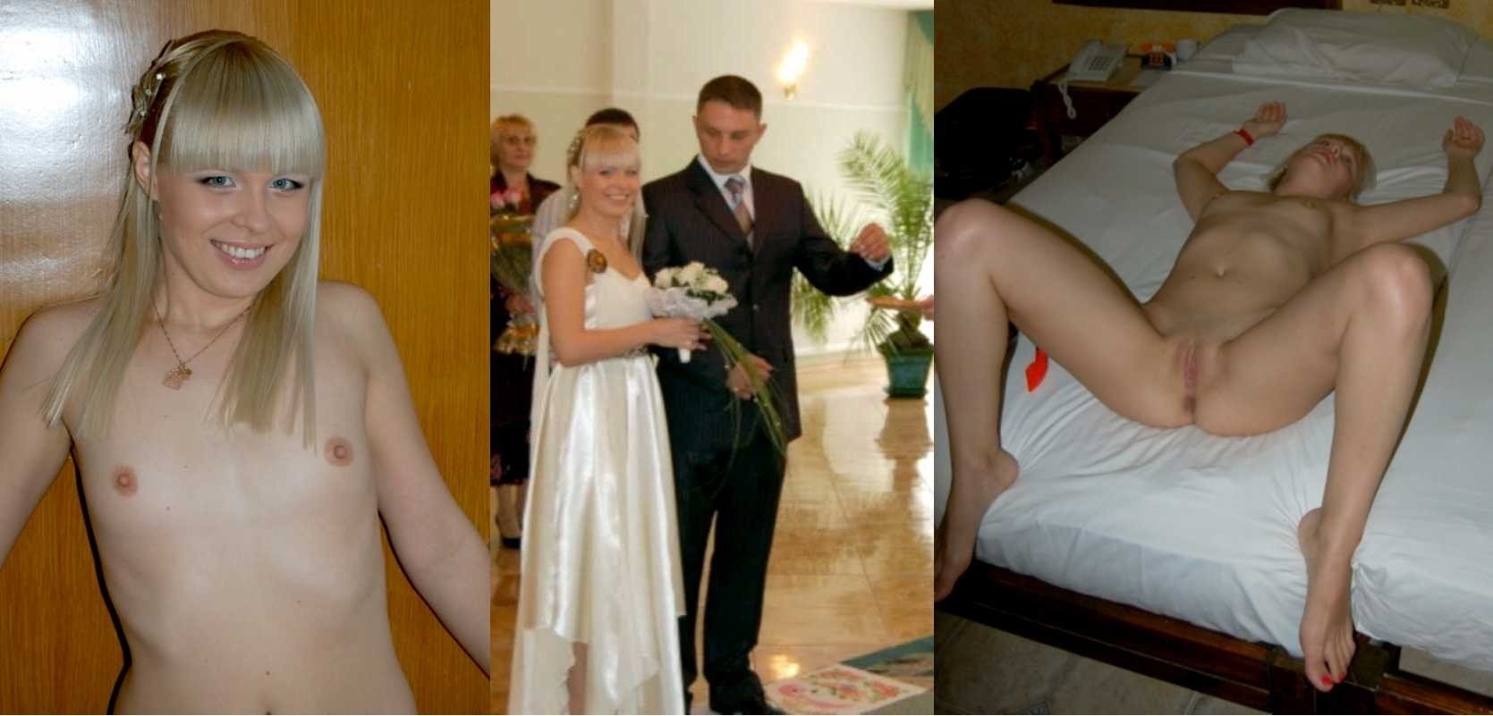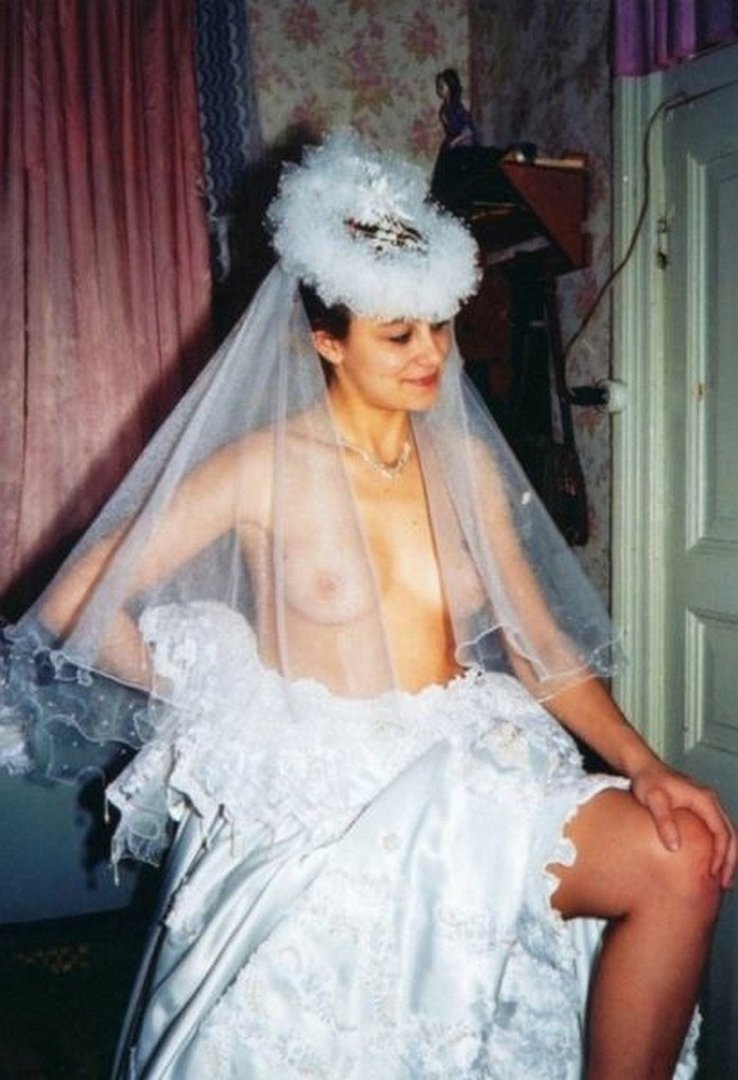 В гостях обнаженная невеста и снимки для нее сделали уже после свадьбы, бросив своего молодого супруга с гостями. Она медленно раздеваться, но фату не снимает. У обнаженной невесты сексуальное тело и симпатичная грудь округлой формы, вот повезло её мужу.