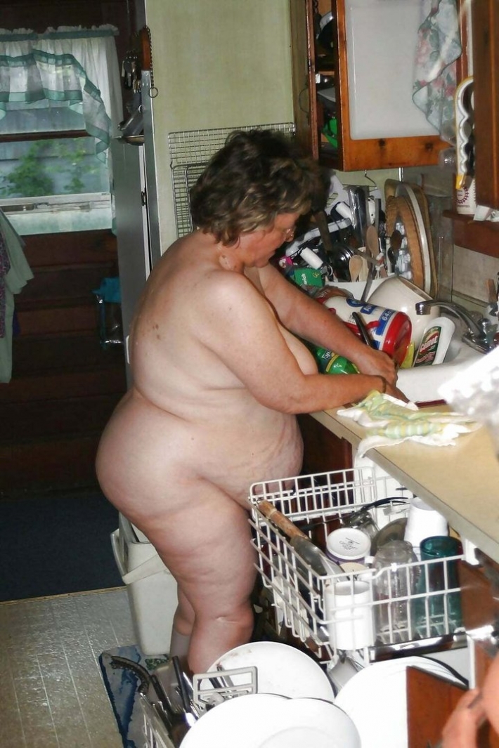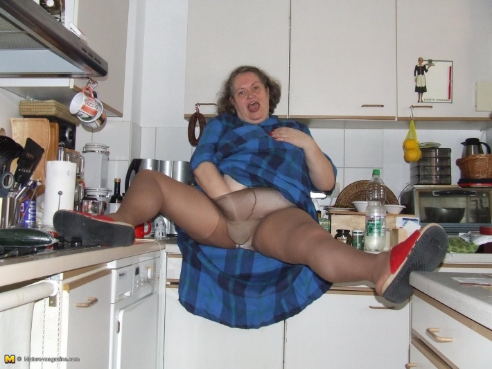 Кого - кого а эту бабушку точно старушкой не назовешь. У женщины есть конечно внуки и она уже не молода, но выглядит она все двести балов. Похоже старость пока обходит ее стороной, даже когда она полностью разделась на кухне, то ни каких старческих растяжек не видно.