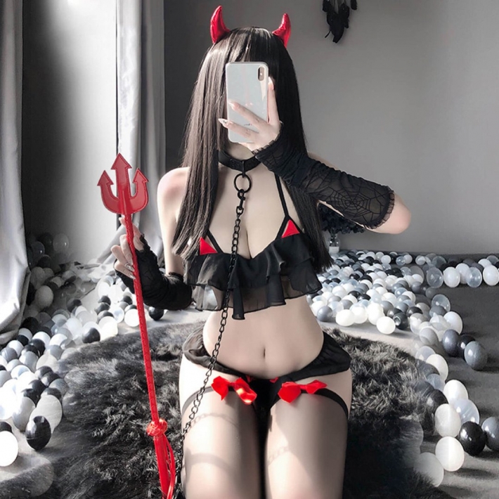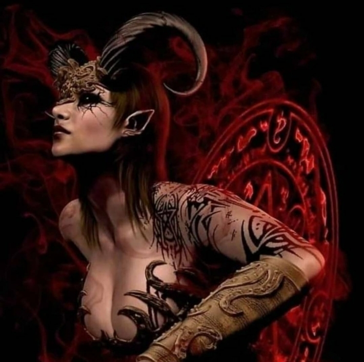 Очаровательная дьяволица, с отличной фигурой, предназначена для секса и разврата в постели. Она сведет с ума даже самого дьявола. Ей хочется поиграть со своей жертвой. ее гибкое, дьявольски красивое тело возбуждает и раздувает фантазию до предела! Она бы засунула свои вилы себе в обе дырочки сразу, если б только могла. Танцуя и улыбаясь строит глазки и обнажает сочную маленькую грудь, к которой хочется присосаться, как младенец к груди своей матери. Дьявольски развратная красота.