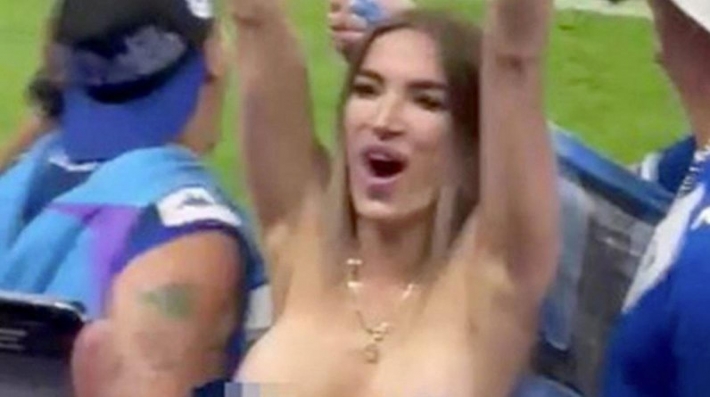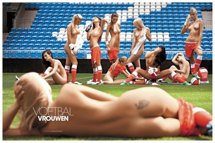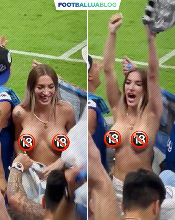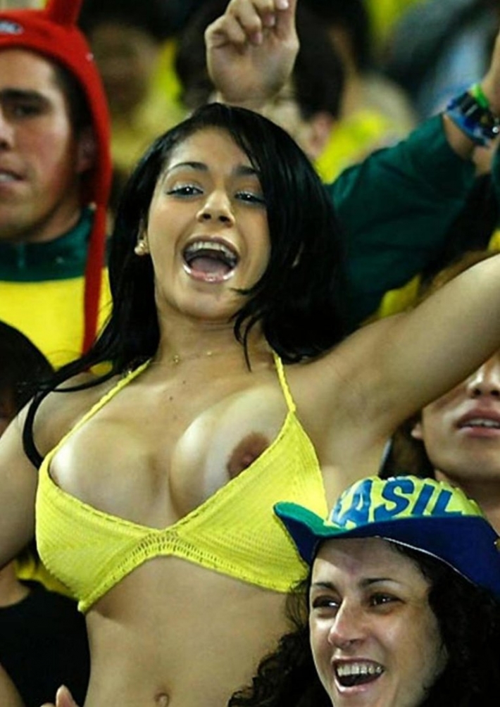 Как же сильно обрадовалась забитому голу эта сногсшибательная фанатка на трибуне, что тут же начала демонстрировать всем свой подтянутый голый бюст. Для этого обнажённой малышке было достаточно лишь задрать свою футболку, под которой не было никакого лифчика. Да, в такой ситуации рядом сидящие болельщики уже не знали куда смотреть, на поле, или на эту раздетую красавицу, которая задорно продолжила обольщать всех до того самого момента, пока её не увели под трибунное помещение.