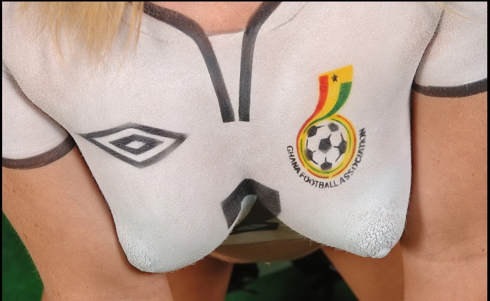 Вот как сильно нужно поддерживать своих спортсменов, что фанатка даже сделала татуаж на своём голом теле, заставляя всех внимательно любоваться на свои божественные обнажённые формы. Тут даже лишних слов не хватит, чтобы полностью передать её соблазнительную внешность. Раздетая краля так хорошо сверкает подтянутой попкой, и подставляет свои разукрашенные титьки, что невозможно с них вообще отвести взгляд. Уверенно можно говорить, что после такого её любимцы не могут её подвести.