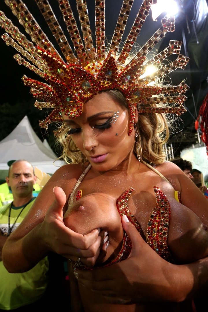 Веселый карнавал сисек в Бразилии проходит, жаль только фотографии любительские, но все хорошо видно. Такие карнавалы славятся не только веселыми и зажигательными танцами, но и разукрашенными сиськами, которые смотрятся просто замечательно.