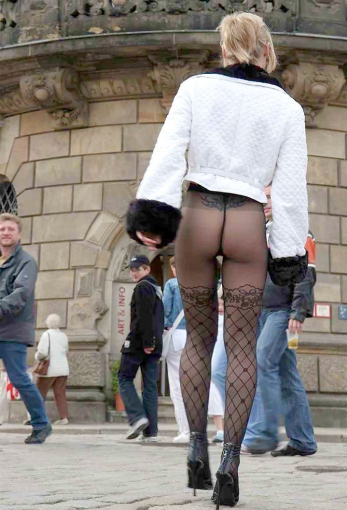 Привлекательная девушка обожает гулять голой на улице и дойдя до угла старого дома, она решилась на откровенные фотографии. На ней одеты сексуальные белые чулочки в мелкую сеточку и белые туфли на высоком каблуке. Стройная фигура и хорошая грудь только радуют взгляд.