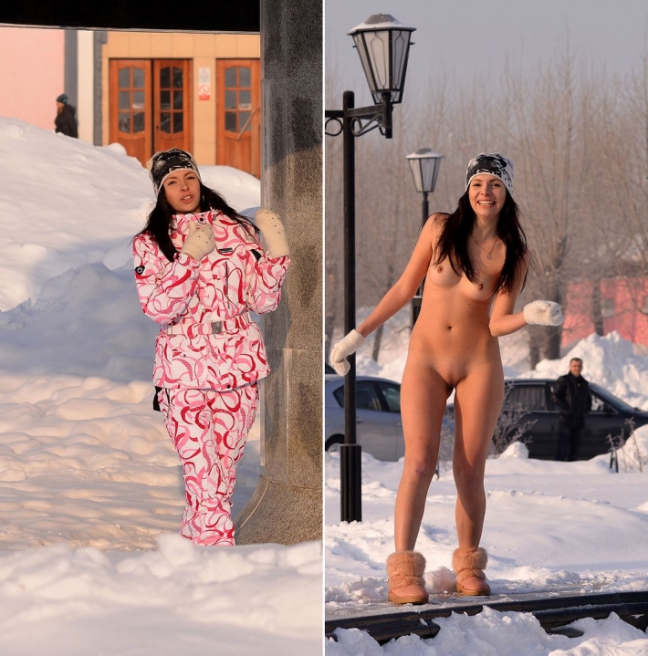 Необыкновенная фифочка показывает нам сейчас, что она настолько разгоряченная, что может без каких либо проблем выйти на улицу раздетой даже в снег. Молоденькая эксгибиционистка понимает прекрасно, что бесследно её голая прогулка не может остаться, и обязательно вокруг неё соберётся огромная толпа зевак, которые с удоволсьвтием рассмотрят все её обнажённые части тела. Вот что за прелесть оказалась в уличной эротике, за что ей нужно высказать огромную благодарность за её пошлые труды.