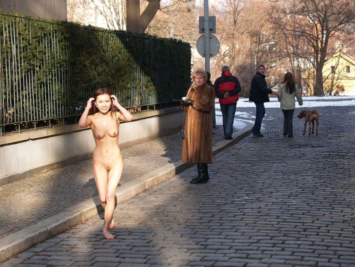 Девка прогуливается по улице полностью в обнаженном виде, смущая проходящих прохожих мимо своей наготой. А девица на них не обращает внимания, где бы не была, или проходила мимо автобусной остановки либо на пешеходном переходе. Гуляет она по улице, а вокруг лежит снег и она как бы должна замерзнуть, ан нет, девка идет по дороге в одной шапочке и забирается на обочине в здоровые сугробы. Проезжающие мимо водители снижают скорость от увиденного и предлагают согреться, но увы, эксгибиционисты все без башенные.