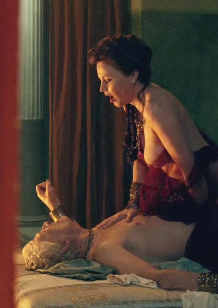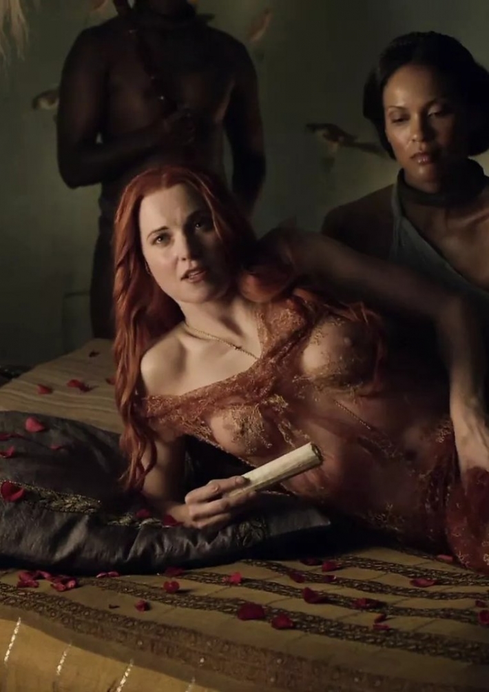 Рыжая и очень привлекательная актриса в интересном и завораживающем фильме "Спартак: кровь и песок" продемонстрировала женские таланты в постельной эротической сцене с очень обаятельным и ласковым мужчиной. Голая Люси Лоулесс сверкает гордо перед камерой натуральной грудью и возбуждает всех зрителей красивой талией. Сладко стоня от удовольствий и блаженства, цыпочка решительно раздвигает ноги и завораживает всех знойных кавалеров дикими страстями и развратными желаниями.