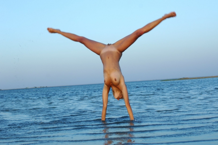На свежем воздухе решила начать развлекаться маленькая телка с отличной задницей и шикарными маленькими титечками. Хулиганка на море, где плавают корабли устроила эротичную йогу, показывая женские достоинства морекам и другим симпатичным мачо. Посмотрите, как умело сука выгибает спинку и насколько довольно выглядит, когда высоко вверх задирает одну ногу и во всей красе демонстрирует сочную пизду. Знойная хулиганка не забудет этот жаркий день никогда теперь.