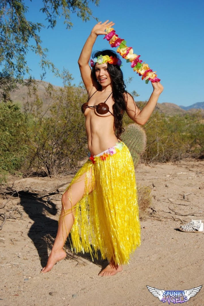 Очень соблазнительная и невероятно красивая девушка с аппетитными титьками страстно позирует голышом под пальмами и заигрывает взглядом с непокорными пылкими мужчинами. Продолжая откровенную эротику на пряже, сексапильная гавайка полностью обнажилась и гордо выставила все женские прелести на достойную оценку. Очень нетерпеливая стерва с шикарной натуральной грудью не будет долго ждать, а сама направится вперед к незабываемым событиям и дикому оргазму на свежем воздухе.