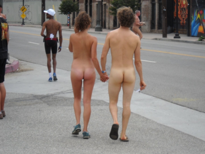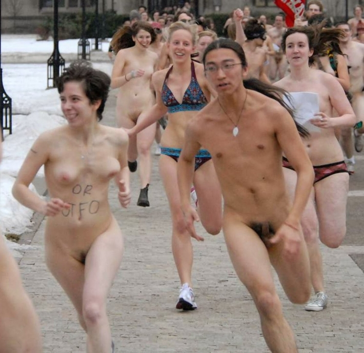 Посмотрите только, насколько счастливы и откровенны обнаженные люди, которые совершенно не стесняются того, что ходят в общественном месте без одежды. Незнакомцы ходят по супермаркету и друг другу строят глазки, сверкая упругими задницами и красивыми натуральными титьками. Разве можно не польститься на шарм молодых голеньких студенток, которые о чем - то весело беседуют и тщательно подбирают товары на полке, желая приготовить вечером нечто очень вкусное и неожиданное.