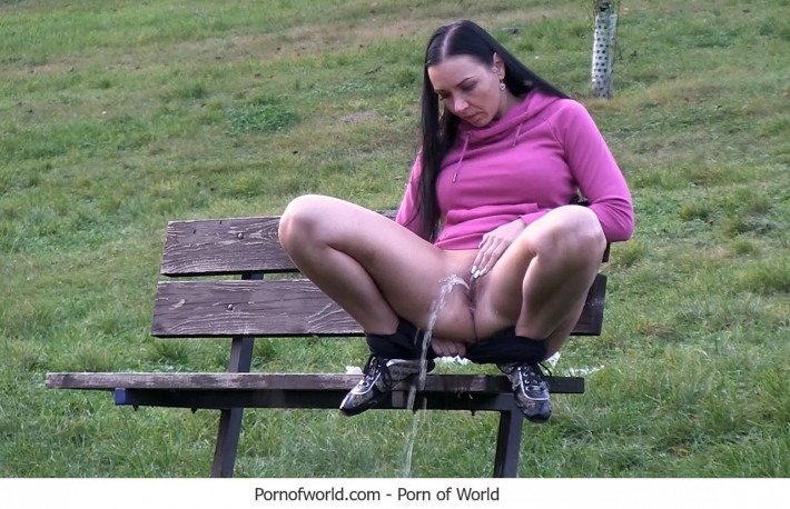 Телка в парке обнажит мокрую киску на скамье (19 фото)