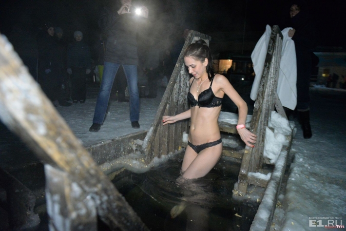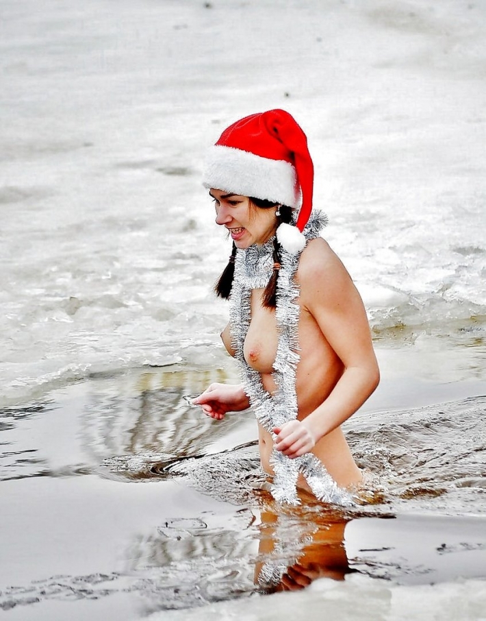 Совершенно голые и невероятно эротичные подружки с мужским сопровождением не могут пропустить Крещение и не показать безумства любопытным зрителям. Телочки аккуратно переходят прорубь, но не решаются войти в воду, потому что водичка слишком ледяная для стройных красоточек. Нетерпеливые телки без лифчика соблазняют симпатичных пареньков натуральными сиськами и твердыми сосочками, которые от холодного ветра замерзли и ждут жарких прикосновений парней.