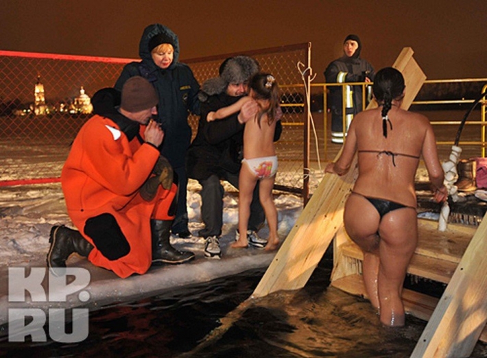 Смотреть - Эротичная подружка переходит прорубь в крещенские морозы