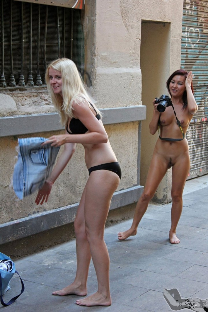Смотреть - Упругие задницы голых подруг на публике