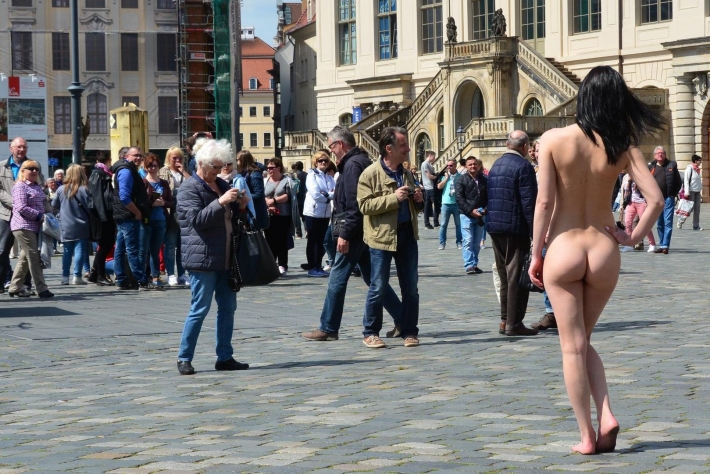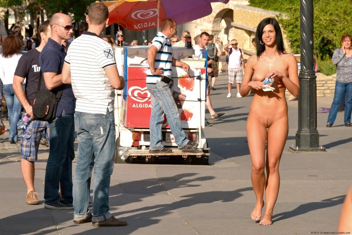 Знает не понаслышке обнажённая женщина, как нужно заводить окружающих мужчин, чтобы они мгновенно испытывали запредельное сексуальное возбуждение, замутив грандиозную публичную пошлость. Дамочка не стала надевать под верхнюю одежду больше ничего, что позволяет ей теперь с лёгкостью засветить свои раздетые сиськи и манящую голую вагину. Конечно, незнакомцам ужасно нравится любоваться такой похабной дамочкой, которая совершенно ничего не стесняется в эротике.