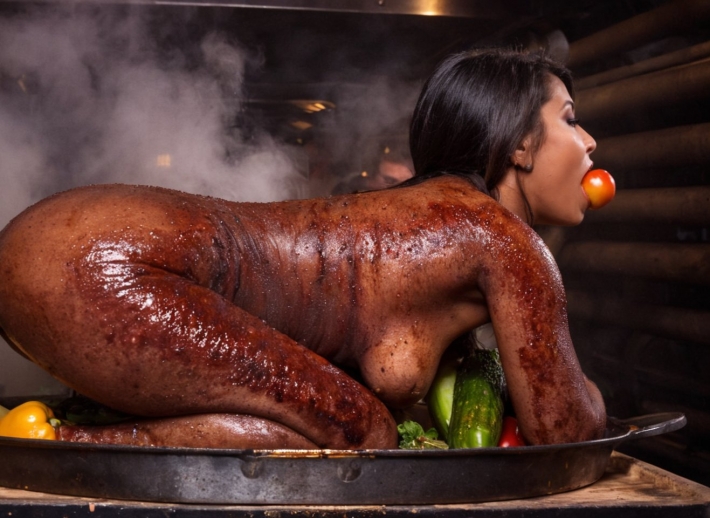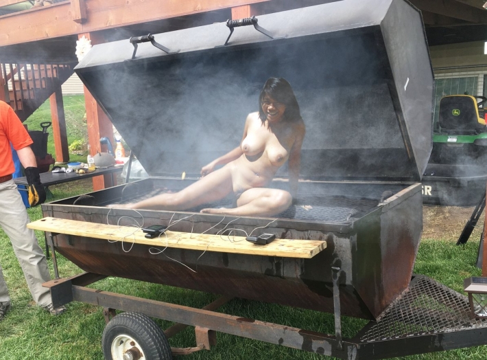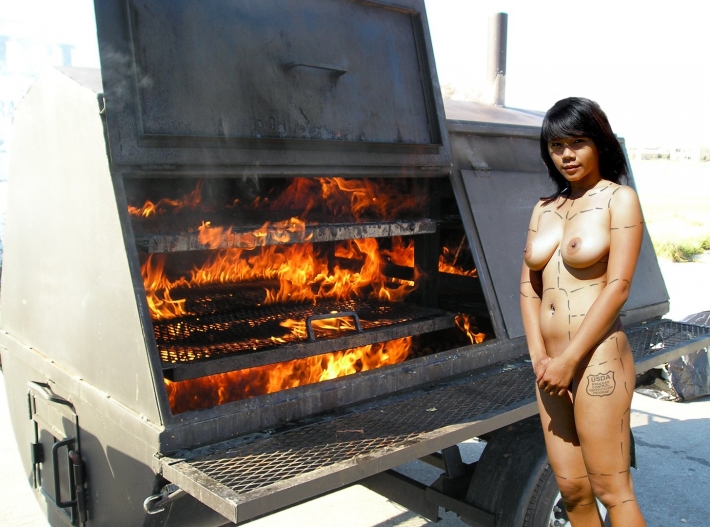 Очень яркая и горячая телка с шикарной силиконовой грудью и знойной улыбкой отказалась на ню фотографиях от шашлыков и решила придумать нечто оригинальное в порыве страсти. Стервочка с божественной фигурой любит барбекю и кушать вкусные сосиськи с влажной от возбуждений писькой, добавляя большую пикантность данной ситуации. Очень опасная девушка приглашает незнакомцев пошалить и покушать, но оплата за подобные продолжительные удовольствия будет слишком велика.