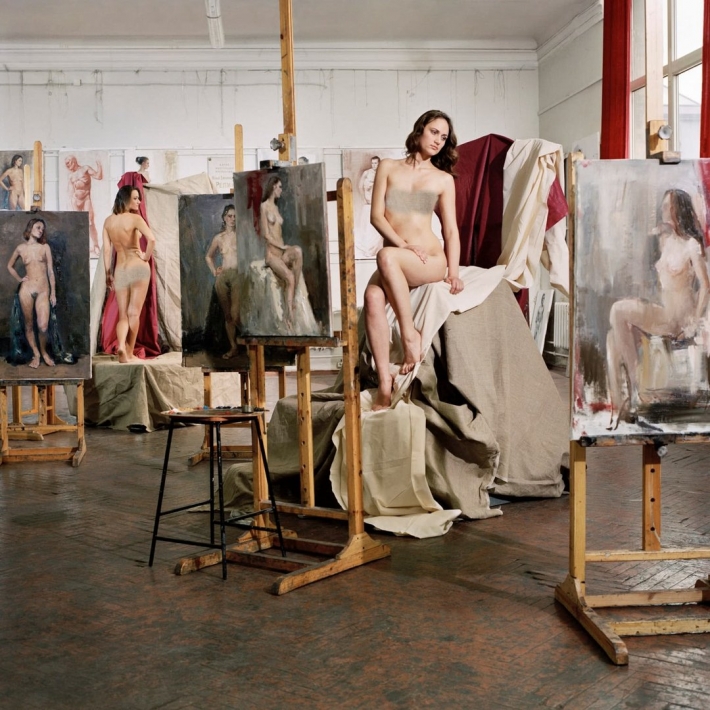 Довольно аппетитная и полностью раздетая натурщица среди расписных картин выглядит просто превосходно с невинной улыбкой на лице и влажной писькой от возбуждения. Брюнетка трясет большими дойками и на ню фотографиях демонстрирует идеальную гладкую задницу, которая приводит в полный восторг художника. Брюнетка с аппетитными натуральными дойками и с коварными планами на вечер готова воплотить в реальность все порочные и безумные помыслы, чтобы испытать оргазм.