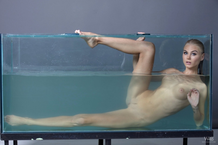 Потрясающим образом совращает публику обнажённая девушка в огромном аквариуме, демонстрируя мужчинам своё превосходное раздетое тело. Симпатичная проказница здорово сделала, что додумалась до такой изысканной эротике, ведь под водой её сексуальное тело выглядит особенно прекрасно. Так как голая куколка позирует в одних лишь стрингах, то каждый желающий имеет изумительную возможность насытиться её обольстительными сексуальными сиськами в самых наилучших ракурсах.