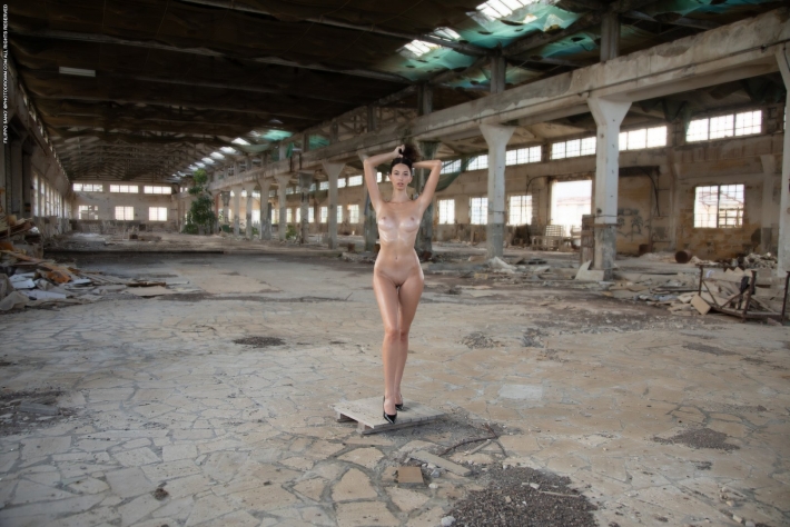 Очень коварная и полностью обнаженная девка со стройными худенькими ножками и очень милой улыбкой на лице танцует страстный танец в гордом одиночестве. Симпатичная славянка в заброшенном месте и с гладкой пилоткой ищет море приключений, чтобы испытать невероятный кайф и наслаждения. Нетерпеливая телочка без нижнего белья готова пойти на подвиги и истинные безумия, сверкая классными титьками и очаровывая преданных поклонников одним только взглядом.