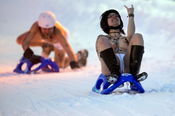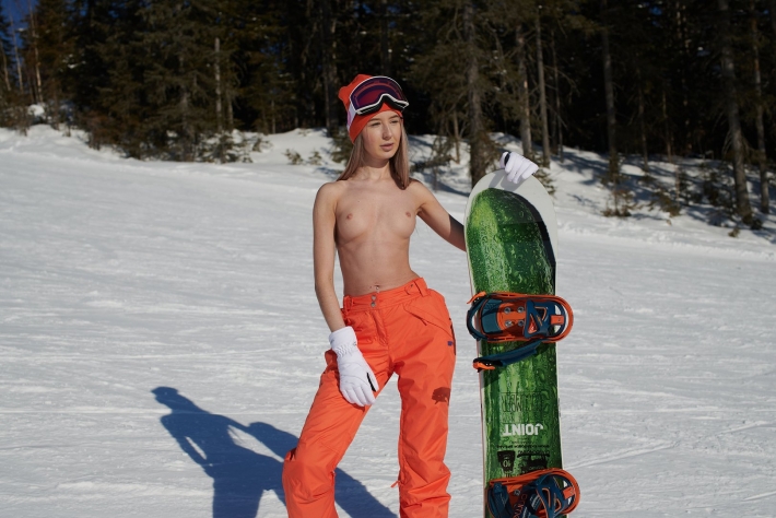 Обнаженная девка ближе к вечеру вышла на охоту, ведь представительные мачо любят спортивных и развратных телочек, которые смело сверкают клевыми титьками на улице в знойных холод. Опытная сноубордистка катается с горы и возбуждается, соблазняя даже стойких мужчин молодым ненасытным телом и откровениями во время состязаний. Стоя на доске, неугомонная хулиганка все ближе к истинному кайфу, придумывая новые сложные элементы на снегу и без костюма.
