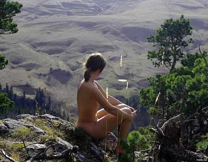 Привлекательная и обнаженная телочка любит ходить в поход, чтобы одежда не сковывала движения во время страстного позирования и лазания по горам. Нежная цыпочка с рюкзаком за спиной и красивой маленькой грудью внимательно оглядывается по сторонам, в надежде увидеть красивых и опытных мужчин. Привлекательная студентка без лифчика снимает даже желтую длинную юбку, чтобы легкий ветерок ласкал и сладкую сочную письку, пока сучка занята важным делом.