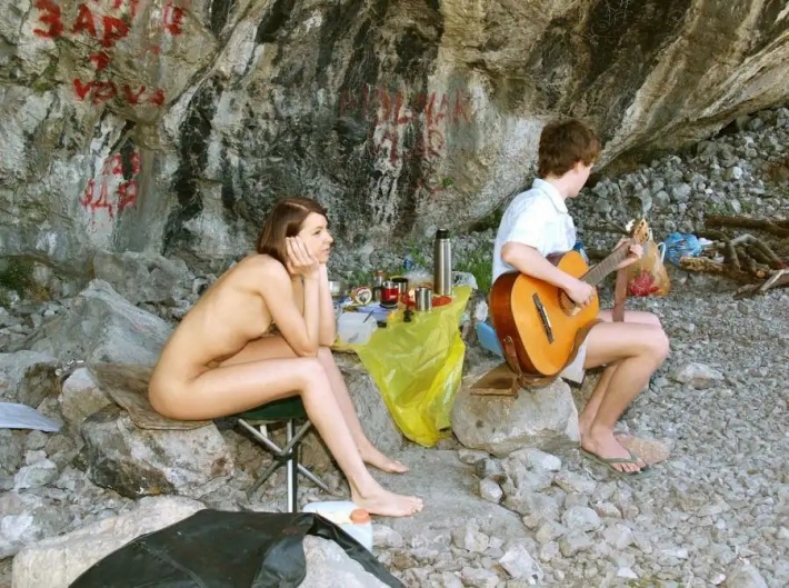 Улыбчивая и полностью раздетая девушка взяла в поход только красный рюкзак и не прикрыла привлекательные титьки, чтобы соски обдувал нежно ветерок. Туристка гуляет в лесу и любуется красотой летней природы, с каждой минутой сильней возбуждаясь и сверкая откровенней выбритой молодой писечкой. Нежная развратница в походе привыкла не стесняться и показательно трясти шикарными титьками для наслаждений, ведь идти еще долго, но в лесу невероятно интересно сейчас.