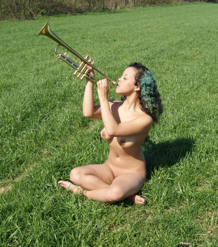 Крутая игра на саксофоне, нас ждет от гостьи которой достала музыкальная школа. Голая деваха с музыкальным инструментом выглядят как-то странно, сразу закрадываются различные мысли о том, как она может его применить. На фото не будет извращений, она легко позирует, принимая откровенные позы. По такой стройной красавице и ее телодвижениях очно видно, что очень хочет воспользоваться не по назначению инструментом, то зажмет между ножек, то прижмется всем телом, видимо не хватает мужчины.