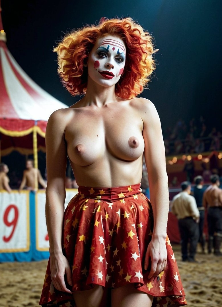 Восхитительно умеют пошлые циркачки позировать обнажёнными, сверкая без всякого стеснения своими сногсшибательными прелестями. Разрисованные сексапильные дамочки с таким энтузиазмом хвастаются раздетыми титьками, что мужчины без ума от каждого эротического кадра, связанного с этими похабными клоунами. Некоторые сучки даже умудрились голую пилоточку продемонстрировать, чем увеличили возбуждение парней в несколько раз. Да, пошлость сучки устроили настолько шикарной, что каждый остался, однозначно, полностью довольным.