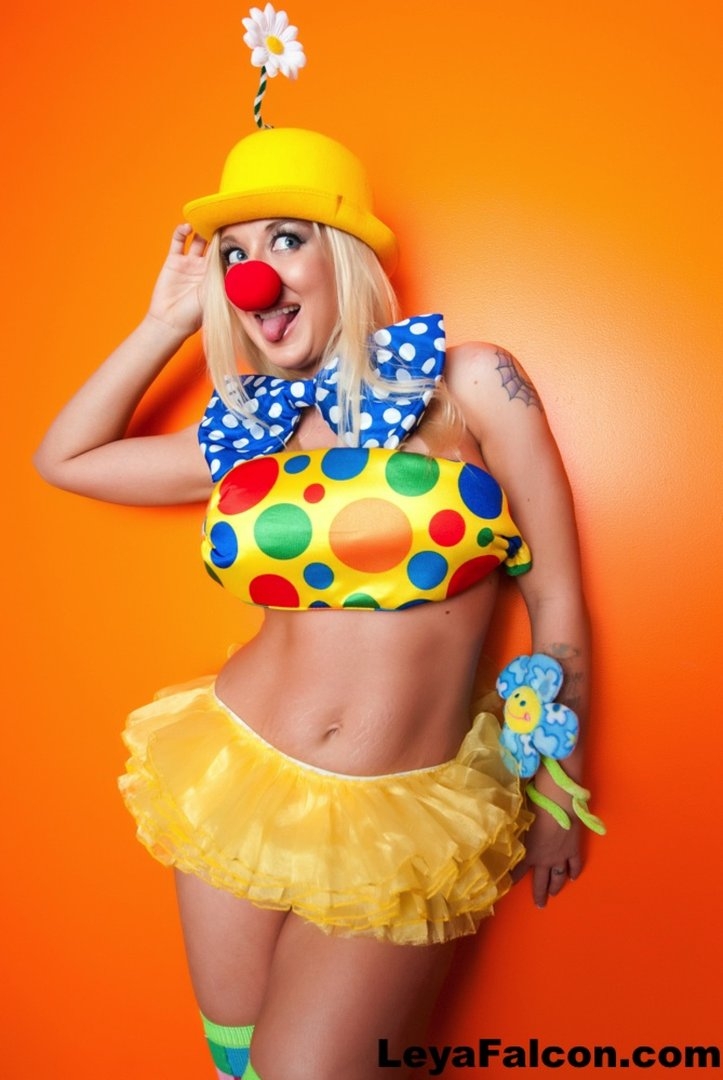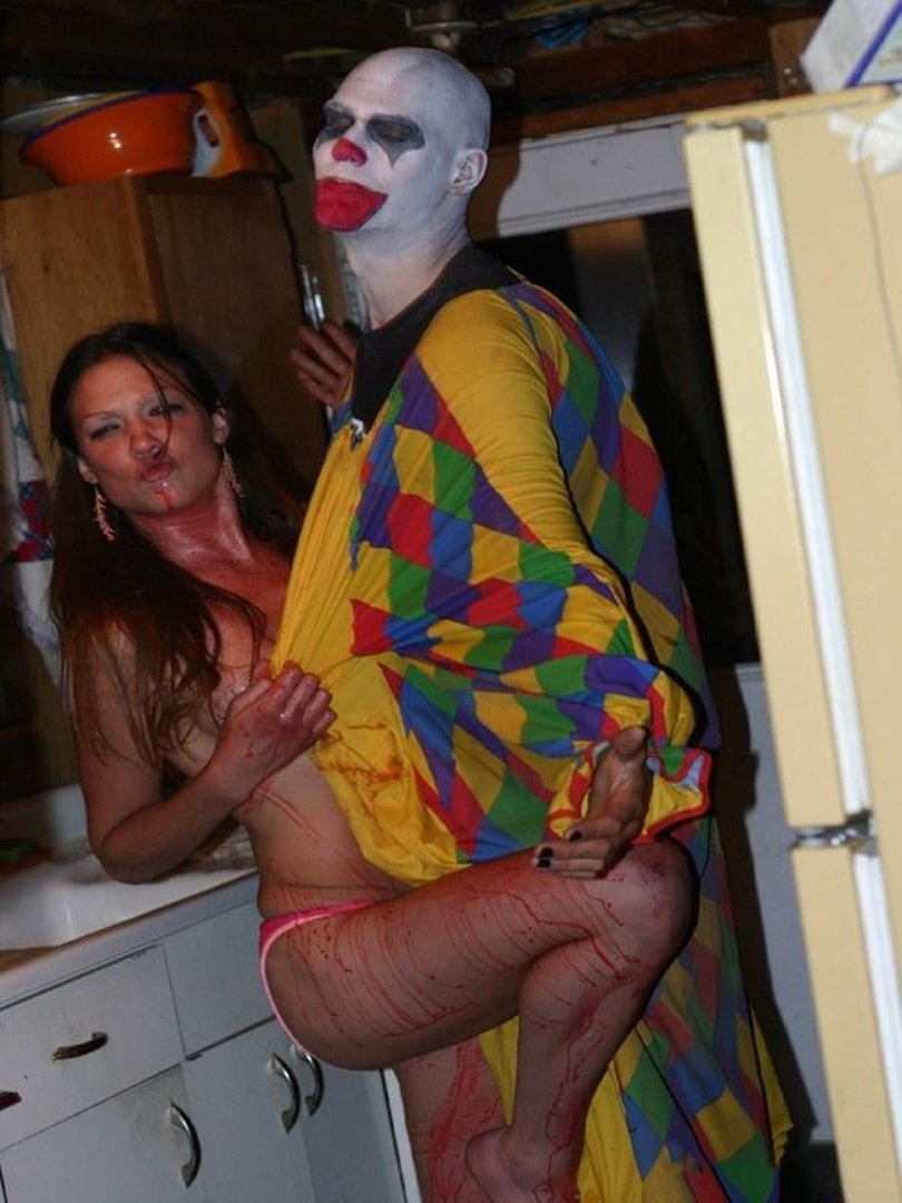 Во время выступления с акробатками, нежные голые клоуны с большим носом делают горловой минет крупным планом, а потом ебутся во влагалище на сцене. Красивые обнаженные телки в костюмах и с ярким париком забывают про приличия, когда вновь смешат публику с хуем во влагалище. Полные пороков и страстей, раздетые клоунессы в маске после этого принимают выстрелы спермы на идеальную грудь.