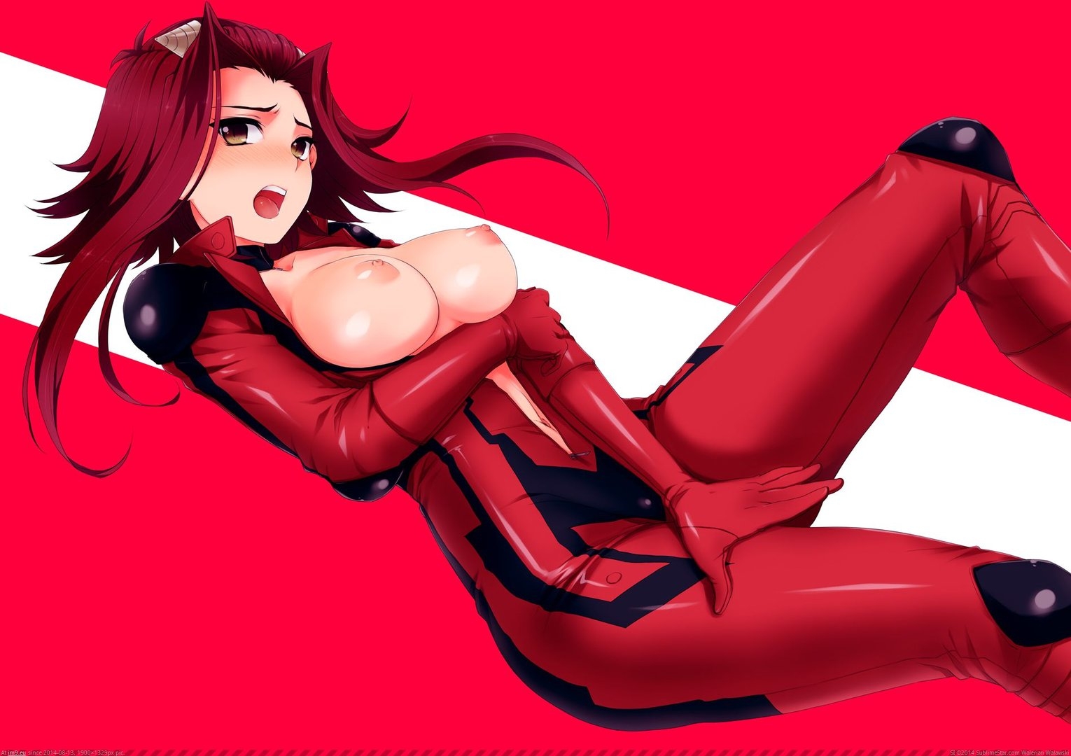 Классный латексный костюмчик на красивой девушке, она сходит с ума от красного цвета и на этих фотках неё отличный костюм из латекса, яркого цвета. Ей очень идет красный латекс, он хорошо обтягивает её стройное и сексуальное тело, и большие сиськи.