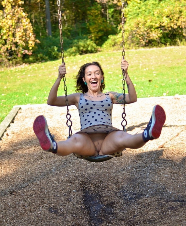 Смотреть - Тёлочка куражится на качелях без лифчика
