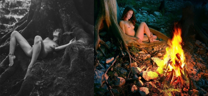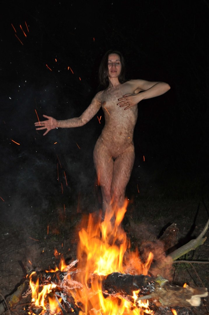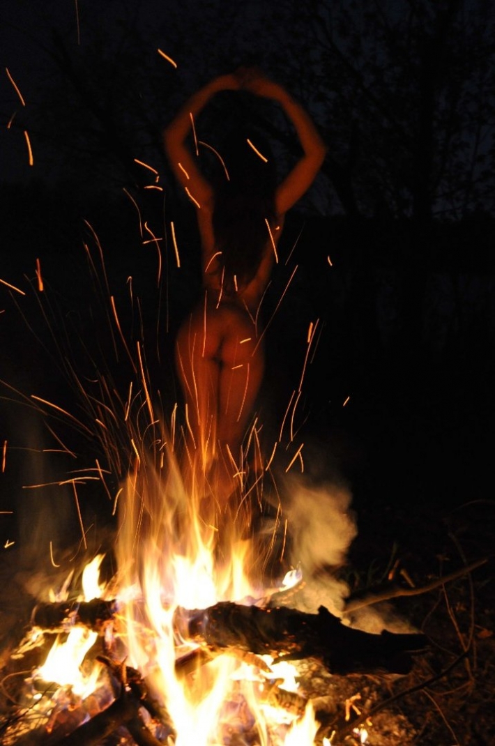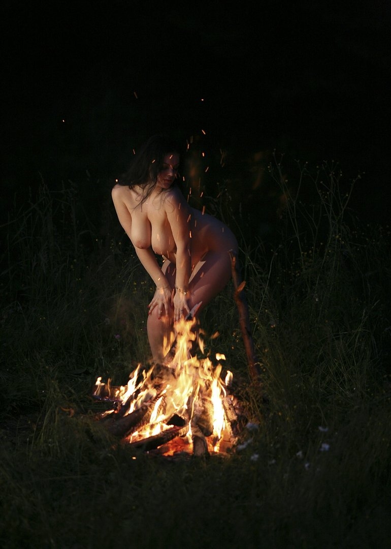 Современные путешествия подразумевают крутую палатку и ноутбук. А еще тут должна быть голая красавица в широкополой шляпе! На природе у костра можно согреться и голенькой и при этом не парится о том, что одежда провоняется дымом. Зато дымом провоняется писка сучки и ее небольшие сиси. Развратница у костра дошла до того, что чуть ли не присела на горящее пламя жопой! Наверное девушка очень возбуждена, что готова трахнуть костер в отсутствие мальчика. Все так же улыбаясь крошка продолжает отдых.