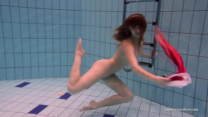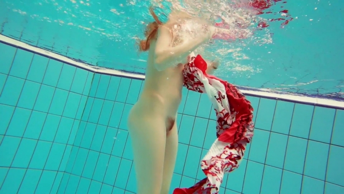 Придя к бассейну деваха хочет научиться плавать. Телочка уже сняла купальник и стоит в набедренной повязке. Когда она присаживается к водичке можно увидеть темную щелочку между ягодиц. Анус так и просится окунуться в воду и красотка с удовольствием делает это.