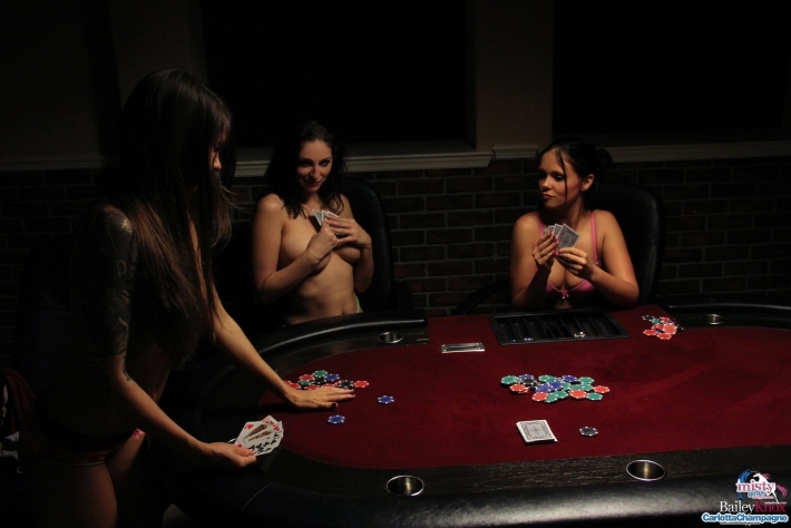 Развратные сучки играли в карты, но потом надоело скучное занятие и они решились полностью обнажиться. От просмотра таких сладких сучек забываешь о всем. Их не большие сиськи и сочные попы, и сладкие бритые письки определенно понравятся.