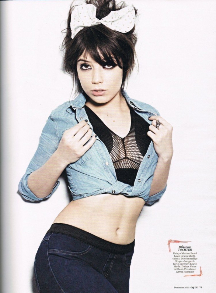 Жгучая знаменитая боюнетка имеет огромное кличество фанатов, которые её всегда поддерживают. Таких поклонников нужно хотя бы изредко баловать, что и сделала Дейзи Лоу, показав раздетые прелести в журнале GQ. Такую великолепную эротику может исполнить только настоящая искусительница мужских сердец. Какие божественные ножки у голой малышке в сексуальных чулочках. Да и обнажённые ягодицы на упругой попенции в подабающих позах смотрится просто феноменально и безумно обольстительно.