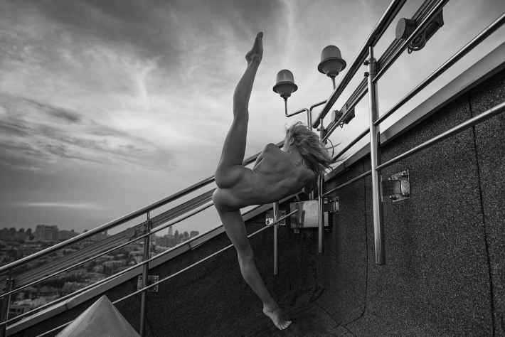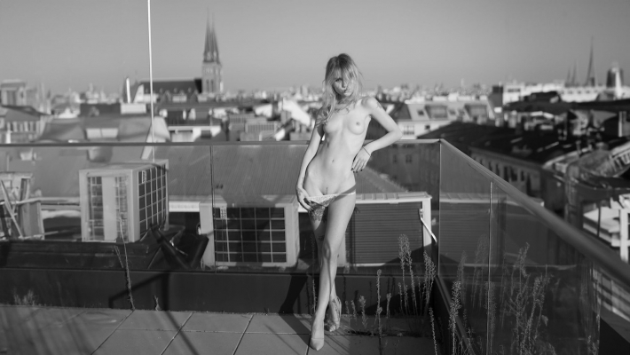 Представ абсолютно раздетой, пошлая женщина на крыше замутила головокружительную эротику, захотев развратить публику на полную катушку. Конечно, окружающие внимательнейшим образом рассматривают голые достоинства отвязной красотки, получая от этого пикантного зрелища массу удовольствия. Да и позирует, кстати, обнажённая сучка очень даже неплохо. Можно не удивляться, почему вокруг красотки находится столько возбуждённых мужчин, внимательно любующихся всеми её красотами тела.