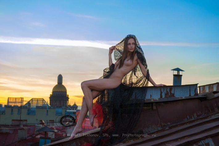 Захотев устроить головокружительную эротику, раздетая девушка посчитала крышу идеальным местом для своих пошлых манипуляций. Привлекательная куколка сразу начала блистательно оголять свои интимные прелести, показывая, что её манящее тело обладает фантастическими данными. Естественно, в первую очередь парни рассматривают обнажённые сиськи красавицы, а затем и её сладенькую промежность с клёвыми половыми губками. Куколка при этом совершенно не испытывает чувства стеснения от таких пошлых действ.