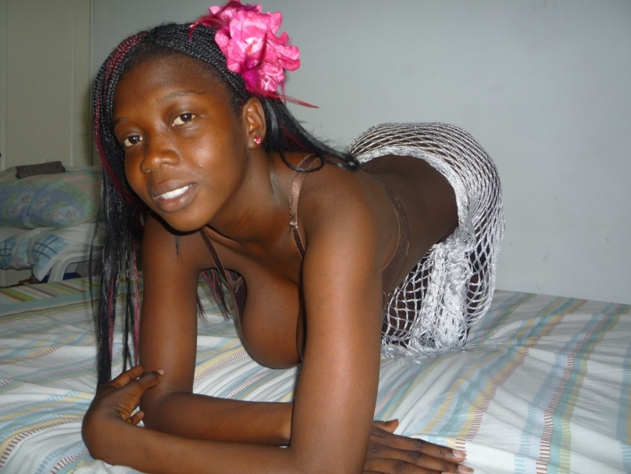 После утренней пробежки, негритянка вся такая возбужденная забежала в комнату и принялась снимать с себя, желтый спортивный костюмчик, топ и шортики. Под ними обнаружились, нормальные сиськи и пилотка, которую долго будет не показывать.