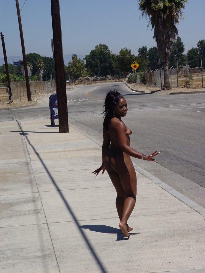 После принятого душика голая негритянка с полотенцем голове вышла на задний двор, а тут настоящий оазис, вот идеально место для расслабления и отдыха. Плавно покачивая бедрами она погуляет немного, показывая большой бюст с неплохим задком.