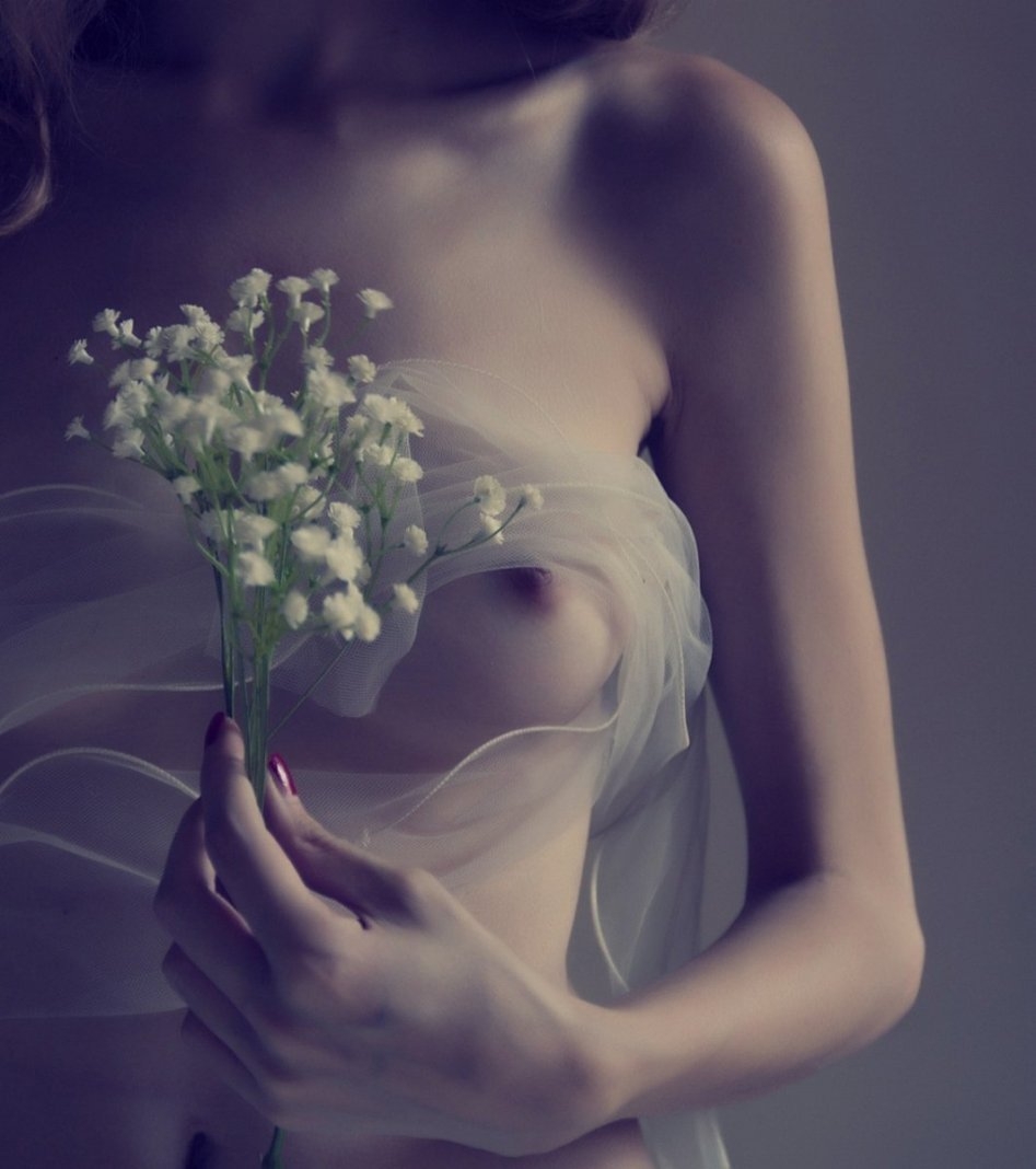 Хорошие фотографии из частной коллекции молодой пары практикующая эротические съемки. На фото девушка с белой розой позирует для своего молодого человека. Девушка с красивым телом изящно преподносит его демонстрируя сочную грудь и писю усыпанную лепестками роз.