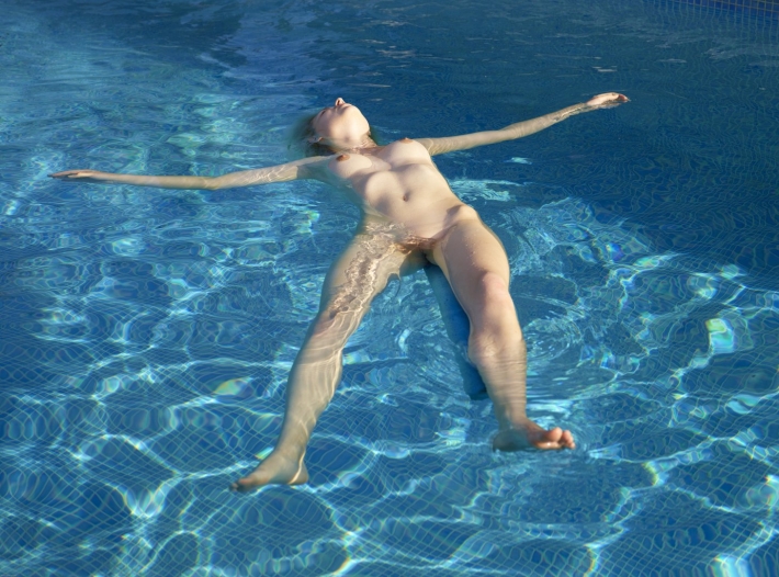 Манюня такая прикольная и смешная, что с ней в компании не соскучишься. Она еще и пытается строить из себя богиню красоты - хотя тело очень маленькое и нежное. Но сиси присутствуют под купальником! Лилипуточка в бассейне сняла цветастый купальник и делает такое страстное личико, как будто ей сейчас будут в ротик давать. Она поплавала с надувными кругами и пристроила попку на суше. Что ни говори, а хоть попка и маленькая, но гляньте какая секси! А между ягодиц красивая писюха бабёнки притаилась.
