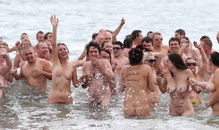 Хорошо проводят время толпа голых русских нудистов, они веселятся, пью и отдыхают. Телочки гуляют обнаженными на глазах зевак. Наши бабёнки как всегда хороши, у них хорошенькие груди, веселые лица, стройные ноги. С такими девками хорошо бы провести время.
