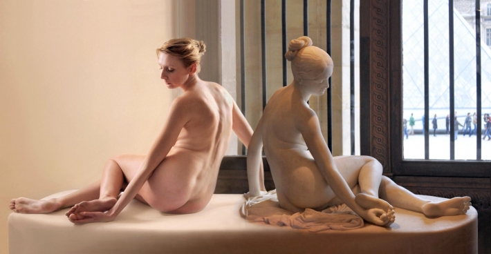 В музее много чего можно увидеть, но только не такое! Никто не ожидал, что блондинка разденется и будет вести себя на ступеньках, как ожившая эротичная статуя богини секса. Просто совершенно голая телка позирует на красном коврике, постеленном, как специально для нее. Она прилегла на ступенечки и переворачивается, как дикая кошечка. Такая сладкая и сексуальная сучка с красивыми, маленькими грудями и вкусненькой попочкой не может остаться без внимания охраны и посетителей.