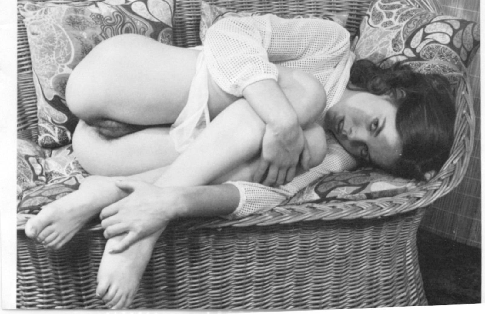 Женщина в соку пошла в лес за грибами. Заготовки на зиму ее мало интересовали и найдя в лесу одинокий дом, решила там раздеться, закинув лукошко по дальше. Девушка снимает рубашку с нижним бельем, обнажая симпатичную киску с сиськами, интересная получилась ретро эротика.