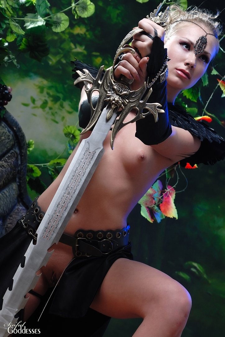 Сегодня эта красотка предстанет в разных образах. Каждый из них по своему прекрасен и подходит нашей девушке. Телочка с мечом выглядит прекрасно, опасное оружие и голая плоть заводит, тем более формы у нее великолепны, а сочная грудь с попкой так и просят нежной ласки