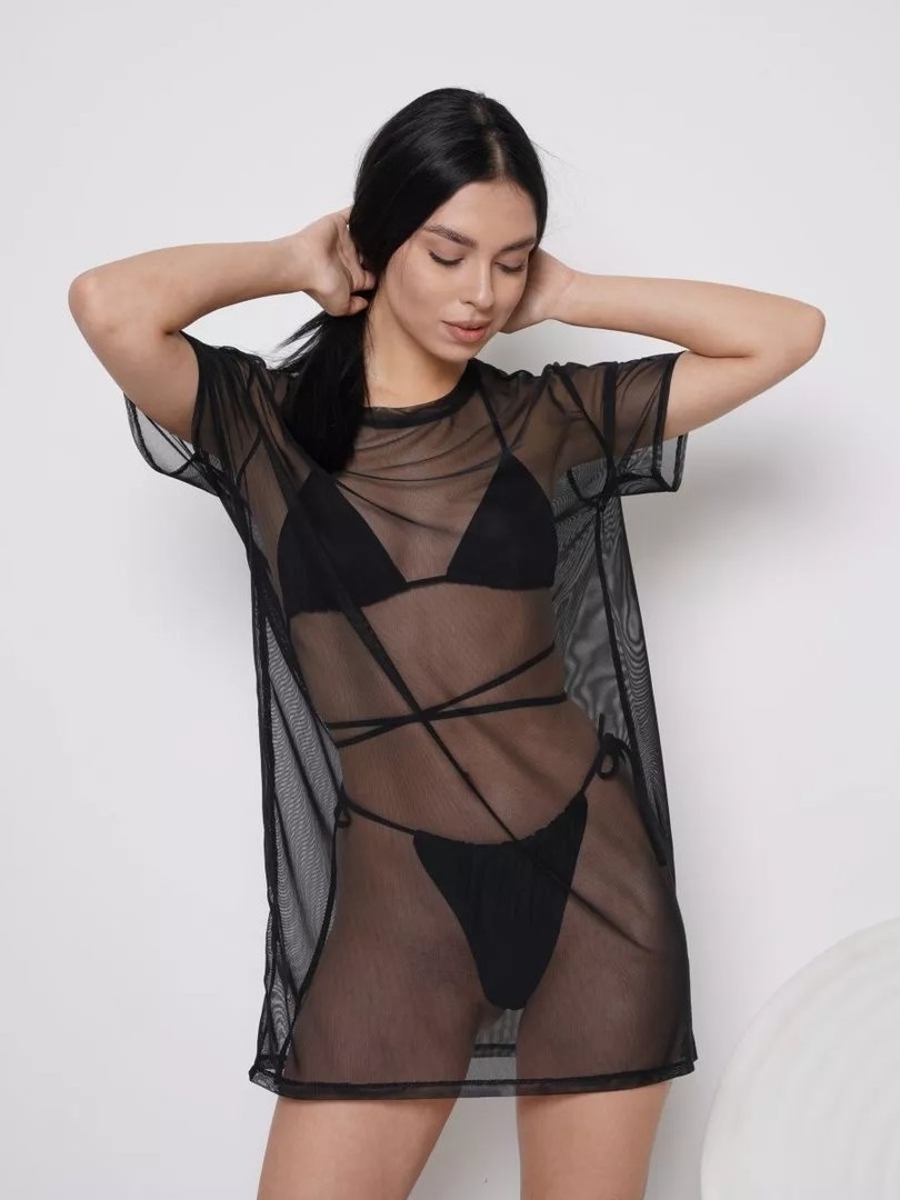 В такой пасмурный денек телочка сидит дома и экспериментирует с одеждой. Перед нами появится девка в некоем подобии прозрачной туники, через нее хорошо видно все ее тело, сравнительно нормальные сиськи, слегка заросший лобок и не плохой задок, скинув тунику мы все увидим тоже самое.