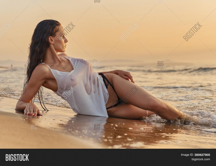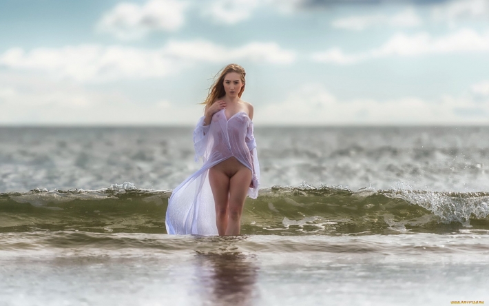 Эта дамочка одела самое свое любимое платье и что она в нем нашла, в общем не важно. Когда она в нем залезла в вод, телочка стала все мокрая и выглядит на много сексуальнее. На берегу она вся в песке засовывала пальчики свои глубоко в пизду.
