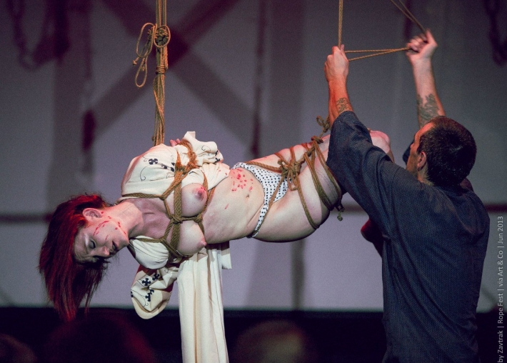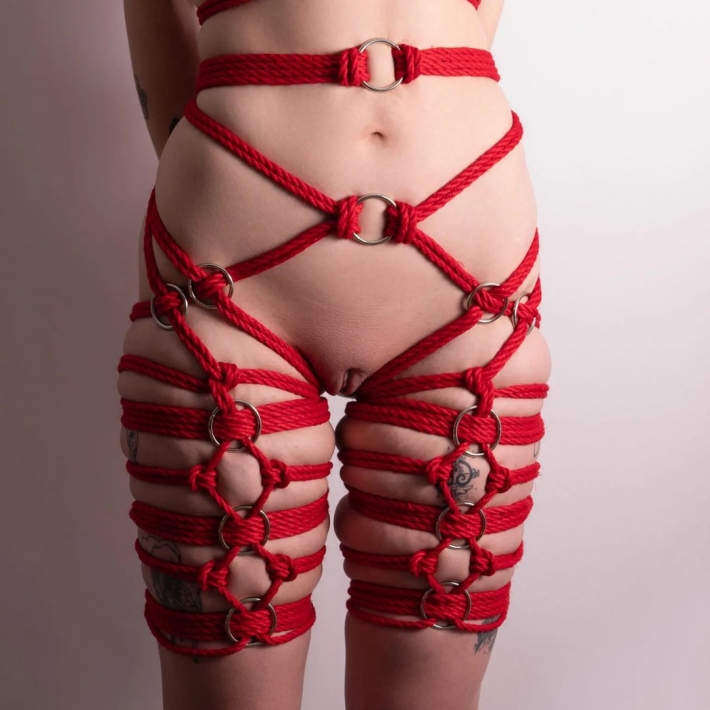 Шибари это не просто порно фотографии с элементами садизма, а настоящее искусство связывания. Ведь надо не просто связать в нашем случае девушка, а сделать это правильно. Нашу телочку связал мужик, у девушки симпатичная татушка а и пирсинг в сосках и половых губах.