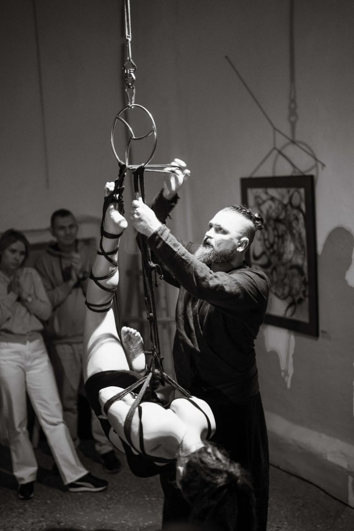 Красивую и хорошо загорелую девушку решили приручить к искусству связывания. Она пришла к одному специалисту который и показал как это правильно делают. Он положил ее на кровать и веревкой скручивает ее в такие позы, что сексуальность девушки только возрастет