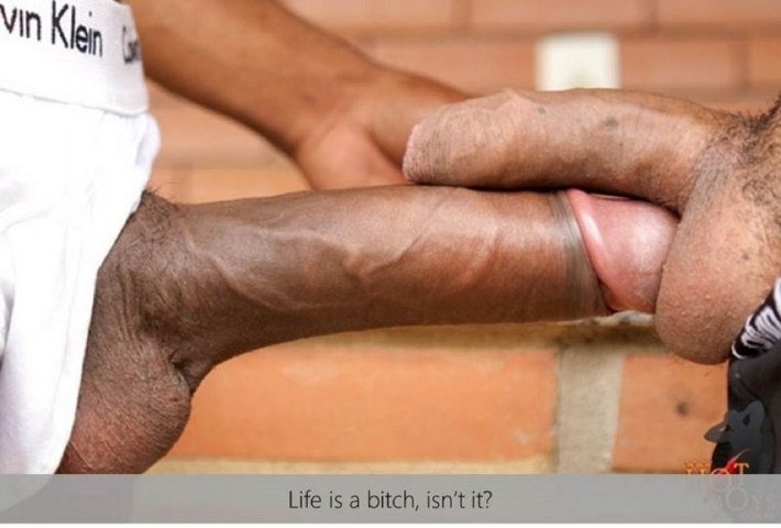 По сравнению с огромными членами, который сейчас суют в рот малолетке, ее тело выглядит просто миниатюрно и смешно. Огромный толстый член в ее пасти выглядит, как большой толстый кабель. Он входит глубоко, аж до самых гланд сучки. Она чуть ротик не порвала.