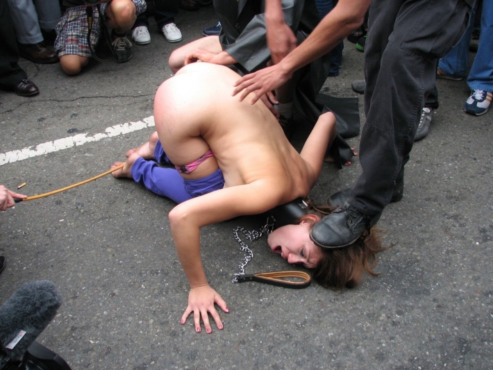 Смотреть - Блондинка трахнулась публично в порно унижение